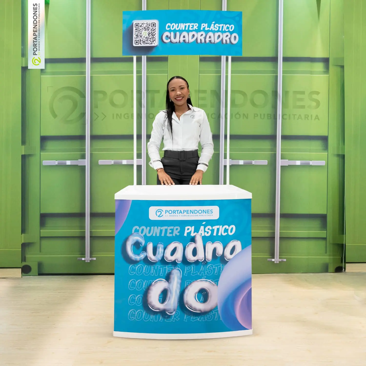 Counter publicitario de fabricación nacional en mdf e importado en plástico. Sistema portátil y de fácil armado. Envios a todo el país.